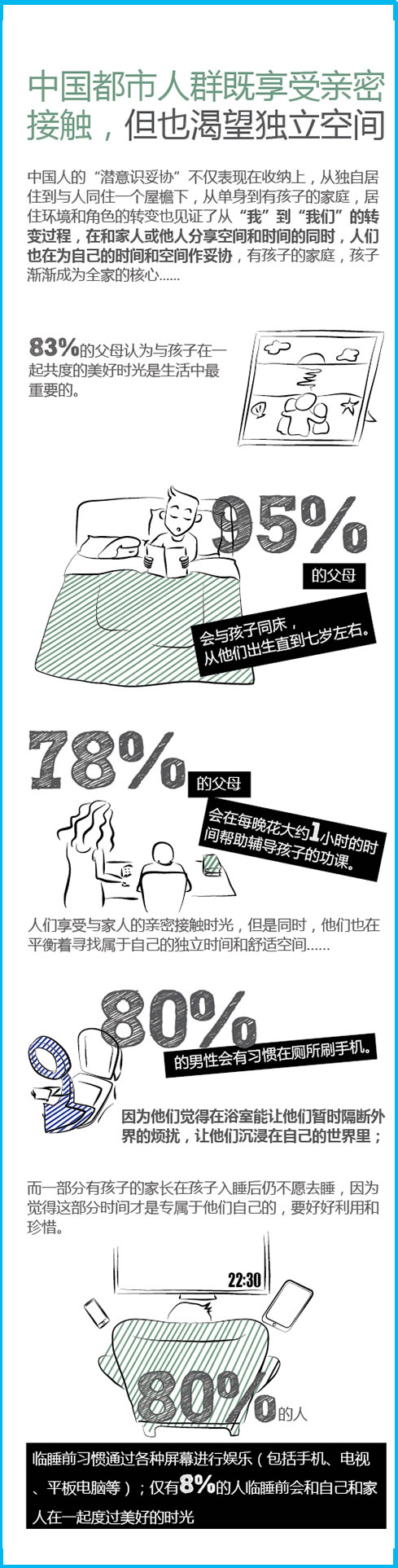 宜家共走访了全国七大城市——上海、北京、广州、成都、沈阳、武汉、无锡,通过在线搜索、焦点小组访谈、家庭拜访和网络数据收集等方法,更好、更详细地了解中国当代都市人群的真实生活状态。今年8月份,他们把这份报告发布了出来。