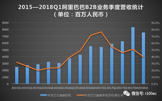 2018年Q1阿里巴巴B2B(包括1688、阿里巴巴国际)营收为35.82亿人民币,较2017年第一季度29.78亿人民币的营收,同比增长20.28%。