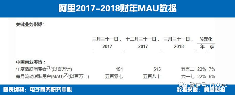 MAU数据:3月份,中国零售平台的移动月度活跃用户达到6.17亿,较2017年3月增长1.1亿。