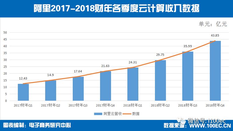 在2018财年,云计算收入反映出更高的水平,数据上显示同比增长101%,达到133.9亿元人民币(21.35亿美元),主要受付费客户增长强劲、以及高附加值产品带来的收入结构改善等因素影响。其中,第四季度云计算收入同比增长103%达43.85亿元,连续第12个季度保持规模翻番。阿里表示将对云计算服务继续投资。