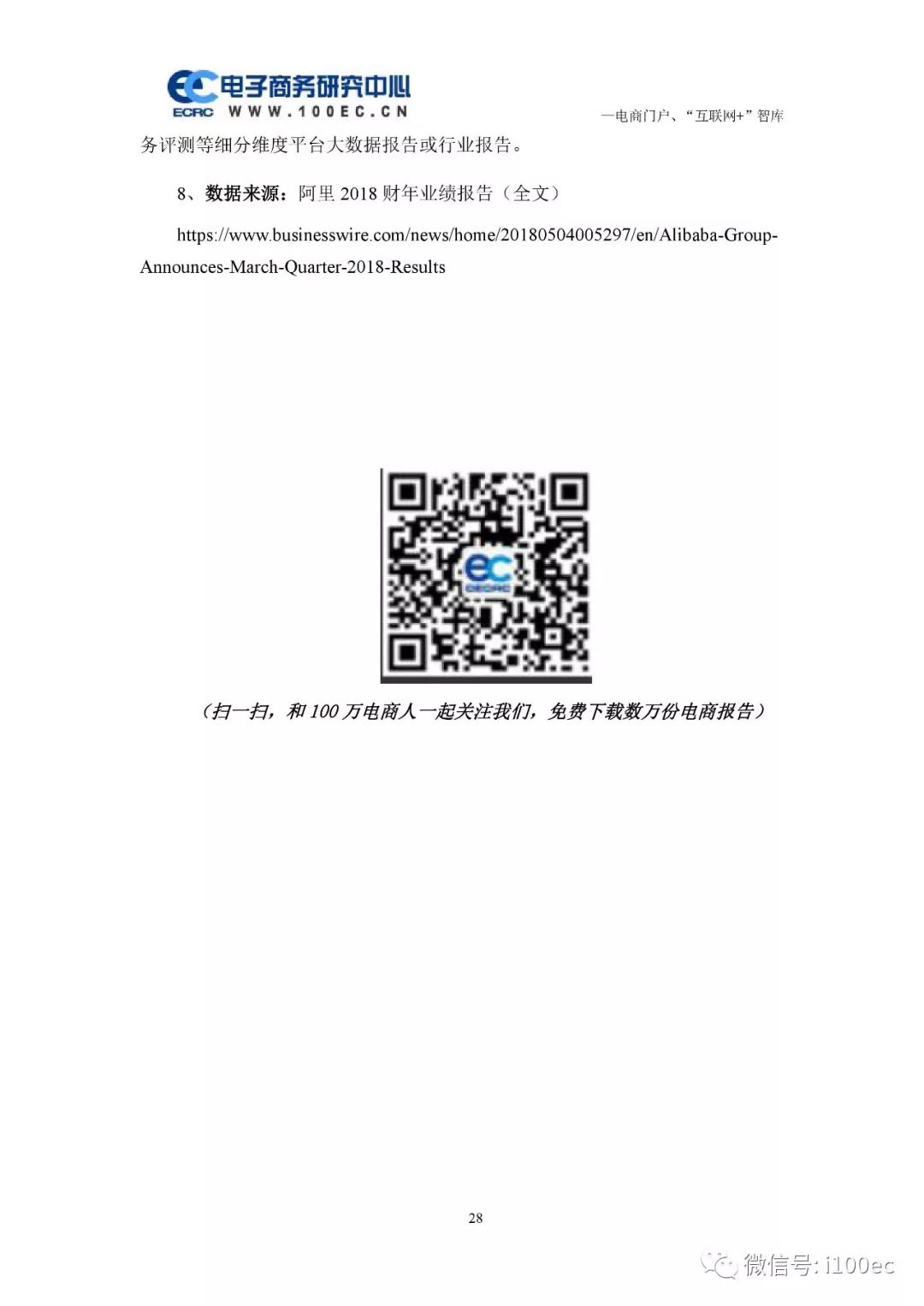 关注电子商务研究中心微信公众号ID:i100ec,后台私信回复“阿里2018财报”, 即可下载《阿里巴巴集团2018财年财报》PDF全文。
