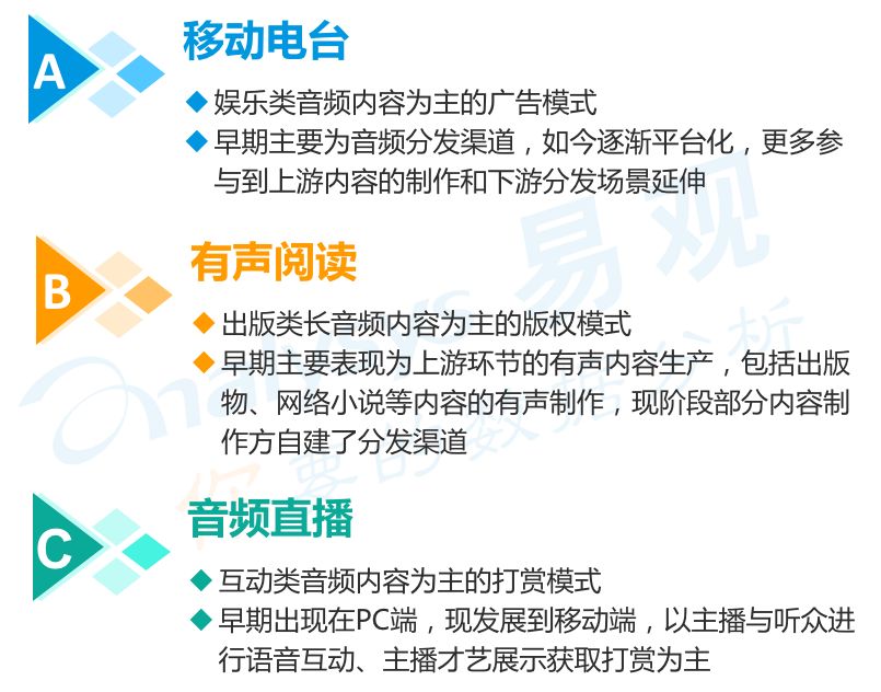 ▌移动音频市场构成:移动电台+有声阅读+音频直播