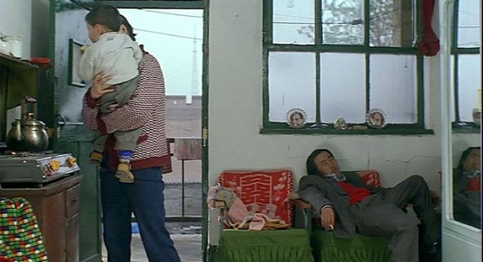 在《站台》的片尾,崔明亮懒散地斜倚在沙发中,尹瑞娟抱着儿子在灶前玩耍,灶上水壶的鸣笛声让人联想到火车汽笛的鸣叫声,这种极度生活化的镜头就是贾樟柯在变迁中对坚守生活的人们的最佳描写。