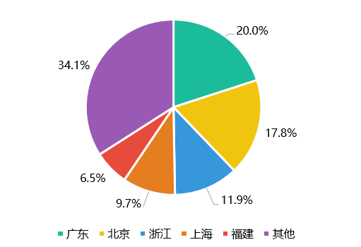 2017年国内上市游戏企业地区分布,来源《2017年中国游戏产业报告》