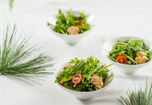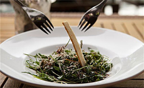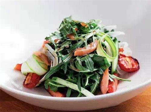 于是,芝麻菜就成了是沙拉中的明星,在传统中餐里其实运用不多。芝麻菜吃起来苦中带一点点呛辣,到喉咙时方能品出一点余香,正是因为独特的味道,使它在蔬菜沙拉的组合里变得非常抢眼。