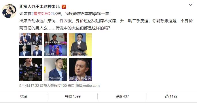 蔚来汽车的创始人李斌,出乎意料的因为「穷」这个关键词而火了一把。