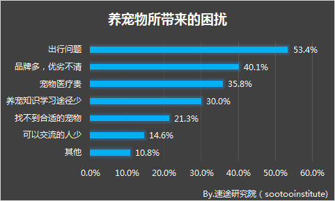 宠物主在养宠物的过程中,虽然空虚得到了填补,但同时也产生了不少问题,据调查结果显示,由于宠物的特殊身份,使得带着宠物出行极为不方便;许多用户反映,市场上宠物品种多,难以辨别其优劣;此外,宠物医疗贵、关于宠物知识的获取以及寻找志同道合的“铲屎官”的难度更是在宠物主的养宠道路上雪上加霜。