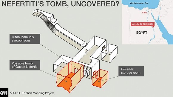 2015年,英国著名考古学家尼古拉斯·里维斯(Nicholas Reeves)通过分析高清激光扫描图像后称,有“90%”的把握认为,他们在坟墓中发现了一个可能藏有图坦卡蒙的继母纳芙蒂蒂最终安息地的暗室。时任埃及文物部部长阿尔-达马蒂(Mamduh al-Damati)当时在新闻发布会上表示,专家们在位于帝王谷的图坦卡蒙墓中发现了一个隐藏的暗室,其中可能含有纳芙蒂蒂的遗骸。