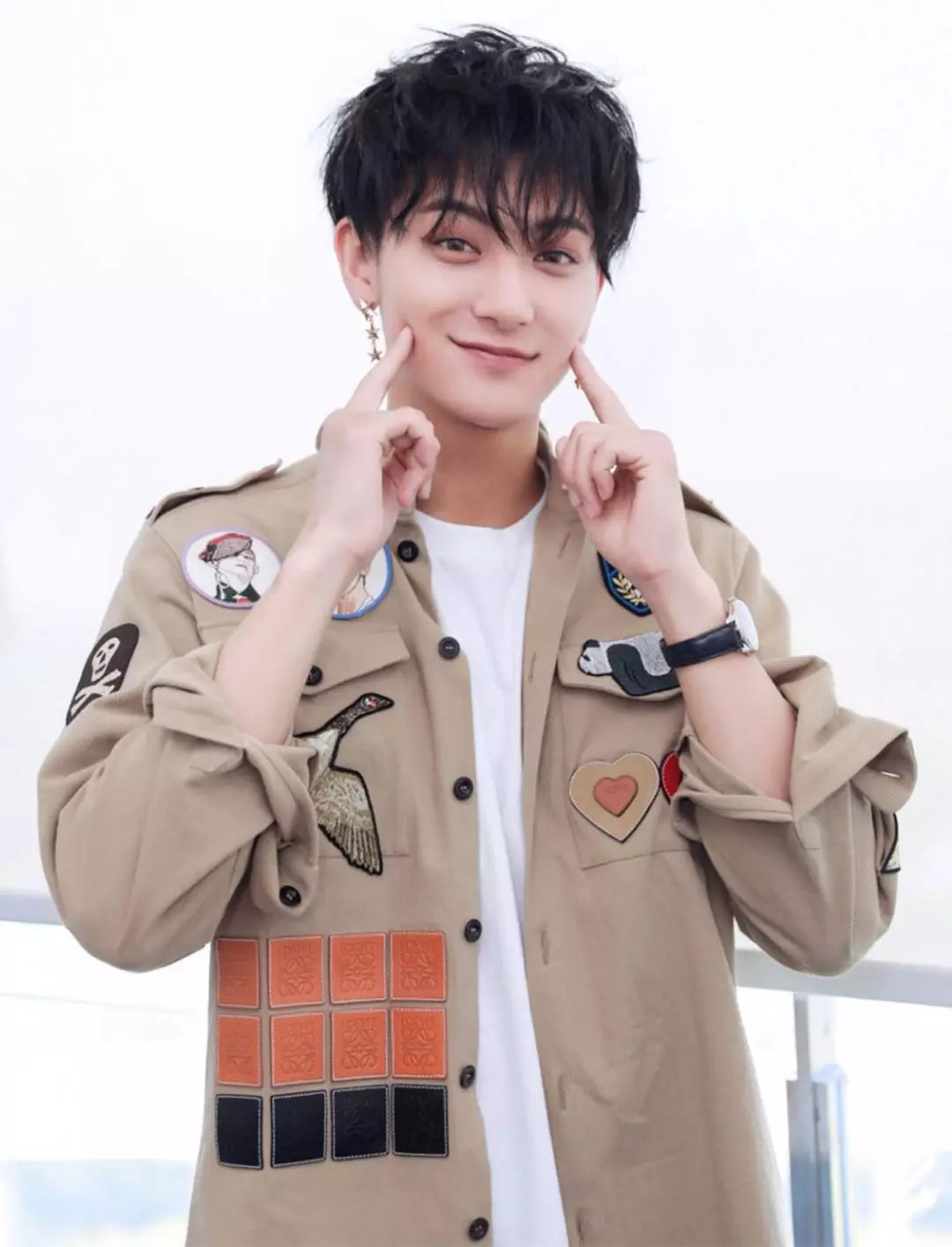 而缀有徽章的军装风制服则很好地体现了他的阳刚帅气。