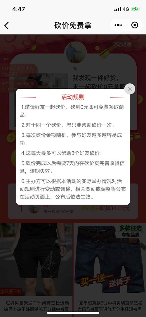 首先这里先解释一下拼多多的砍价模式,我们来看一下官方规则。