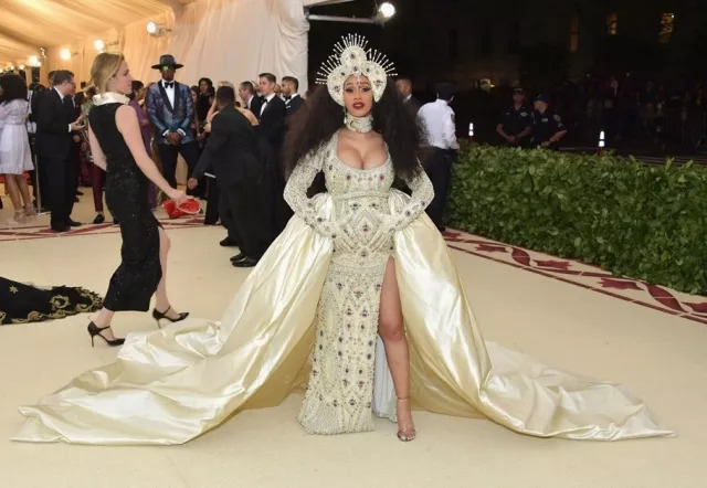 Cardi作为这两年风头正劲的说唱歌手,极具个人风格的不仅是她的作品,还有她的衣品。每一家媒体都在她刚登上红毯那一刻将所有摄像头对准了她,记录下了这泰姬象神的珍贵画面。如果说你觉得她自己设计的头饰相当出格,那往后看,更精彩的还不止她一人。
