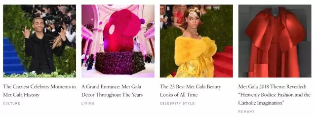 2018年度Met Gala,VOGUE官网早早放出了各种历年回顾专题来对今年的活动进行多轮预热。