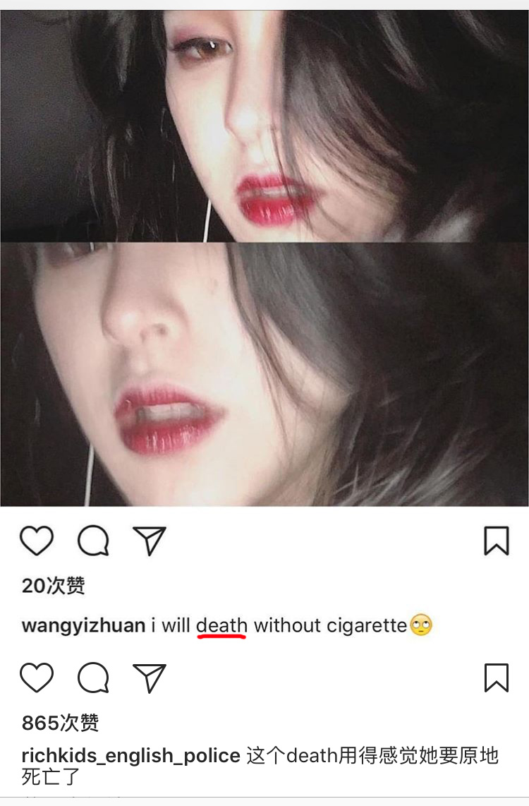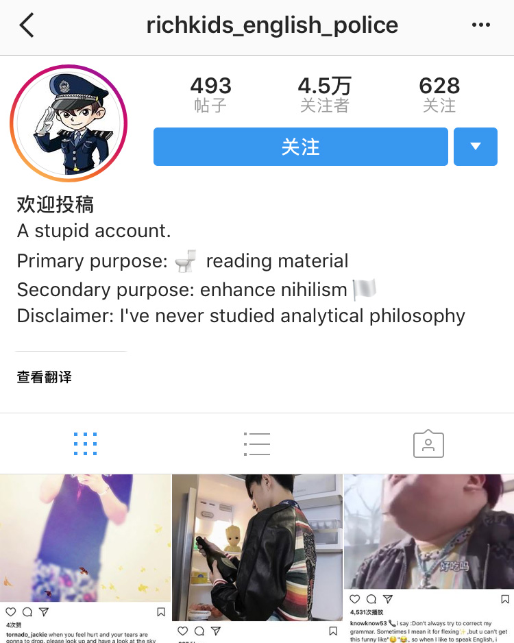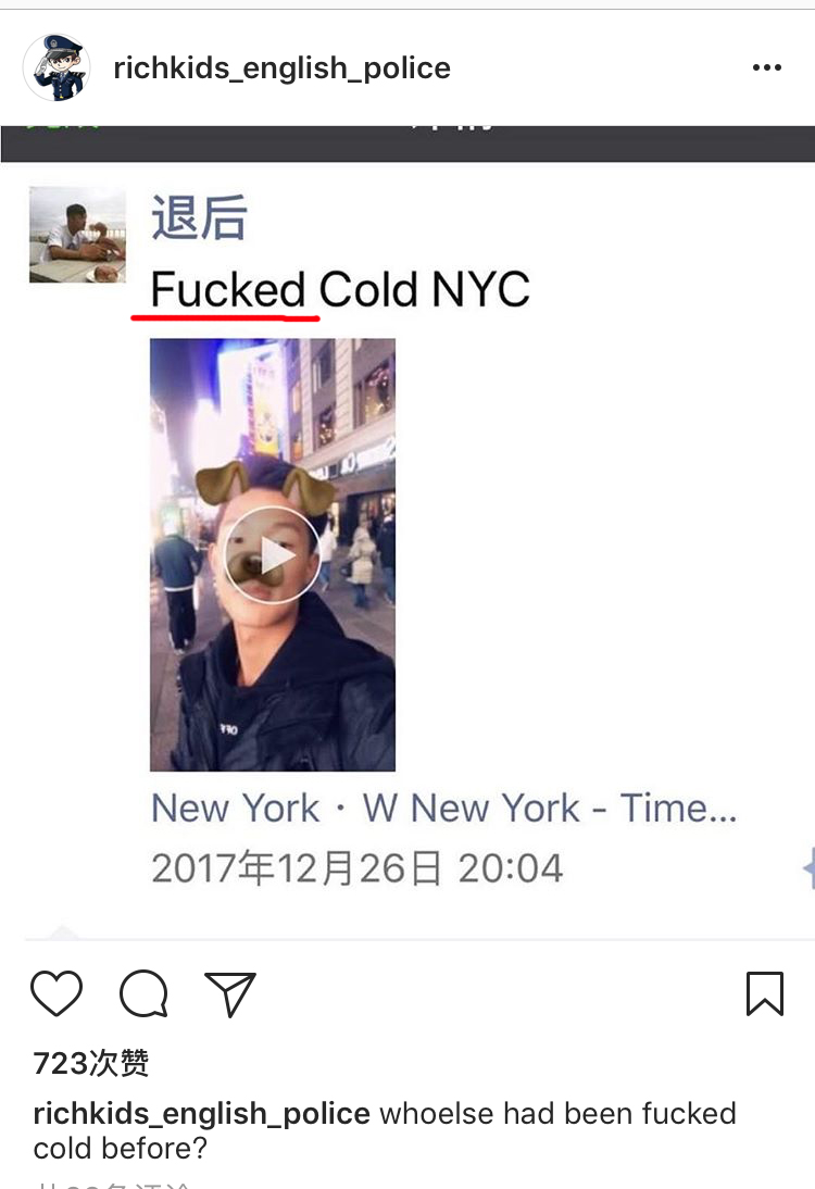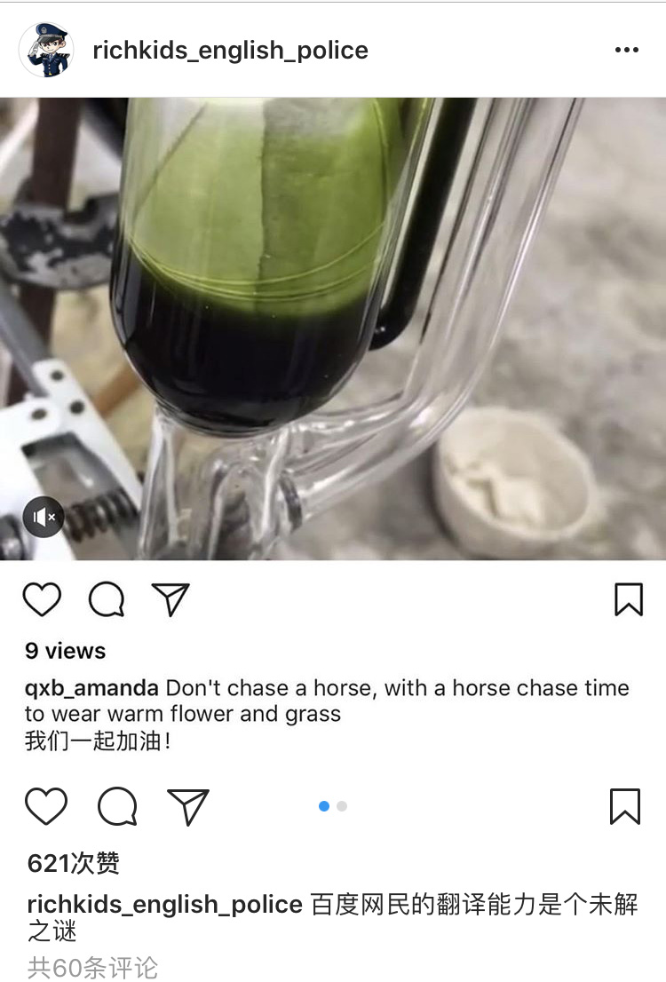 其实,他还有一位网红好姐妹@richkids_english_police,专门和网红们的蹩脚英语作对。▼