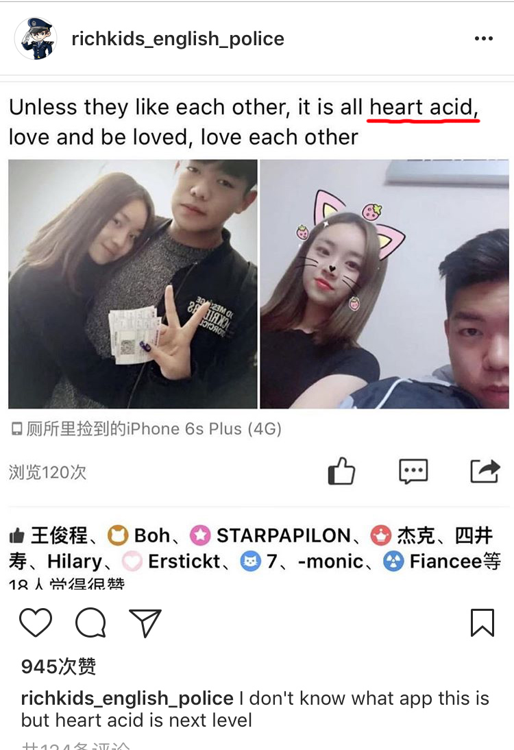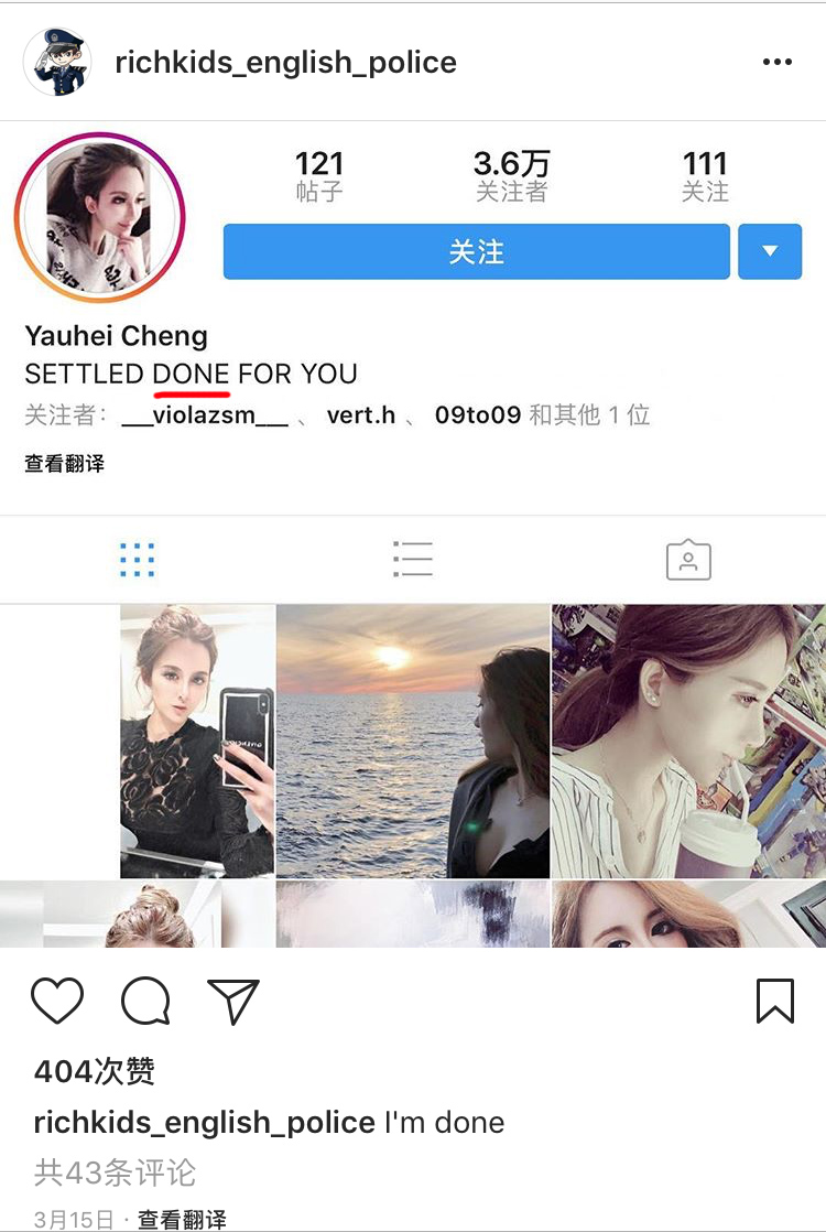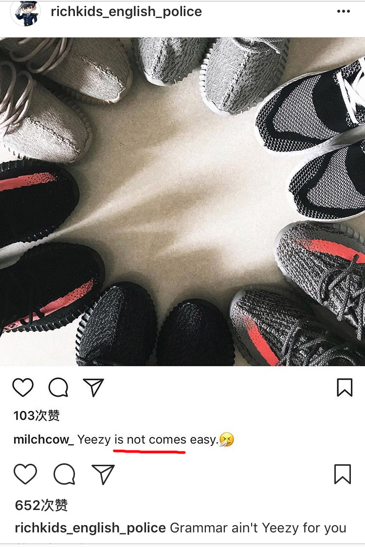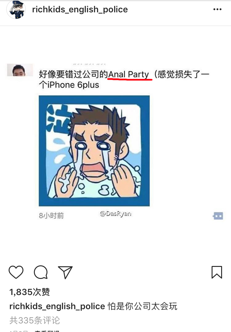 其实,他还有一位网红好姐妹@richkids_english_police,专门和网红们的蹩脚英语作对。▼