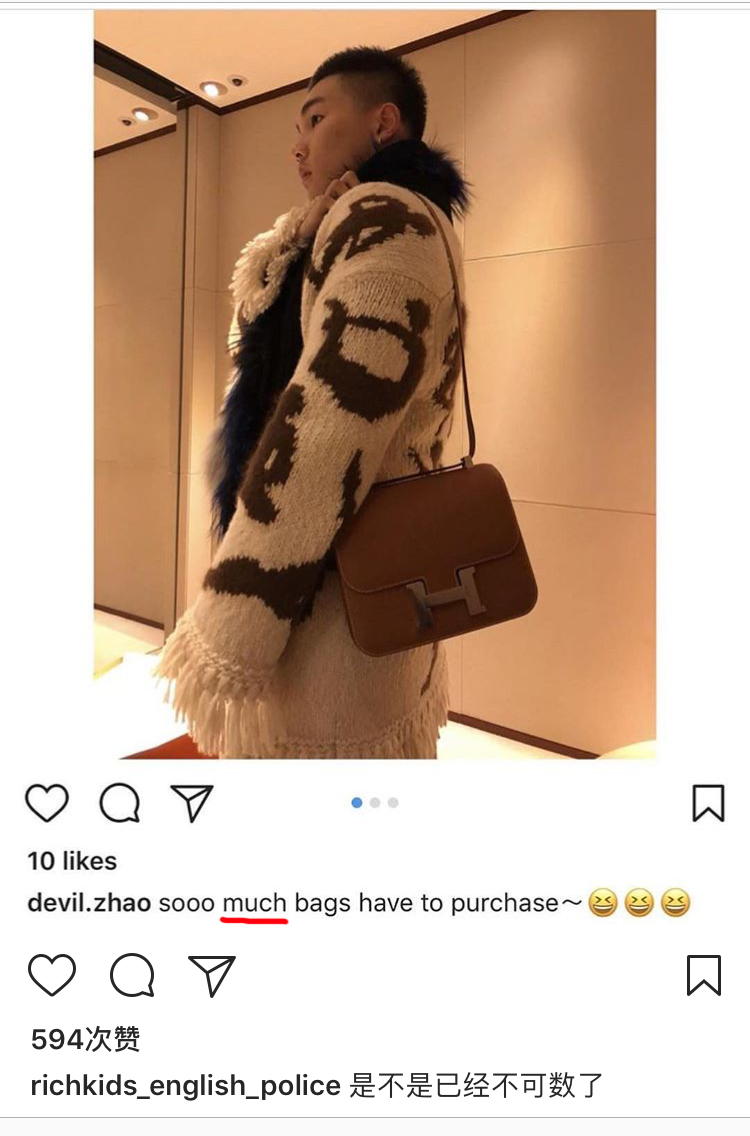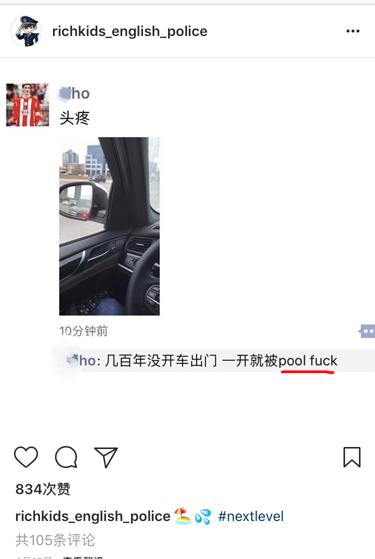 说实话,偶尔的语法错误还不影响我们对这些richkids炫富的理解。▼