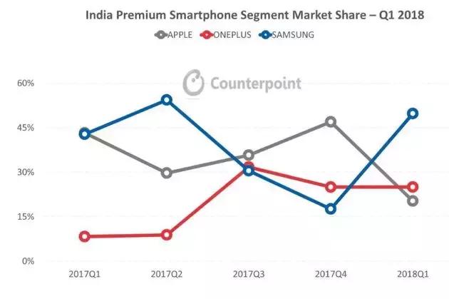 作为国产高端机型代表一加手机,一加手机在去年推出搭载骁龙835、6/8GB的运行内存、1600万+2000万像素双摄等顶级配置的高端机型一加5t,总销售额同比去年增长了192%(增长最快的品牌),在高端市场份额多达25%,从去年的第三季度起一张保持着印度高端市场排名第二的位置,在今年的第一季度超过甚至苹果,与三星苹果一起位列前三。所以这或许将会成为国产手机厂商的一条新出路。