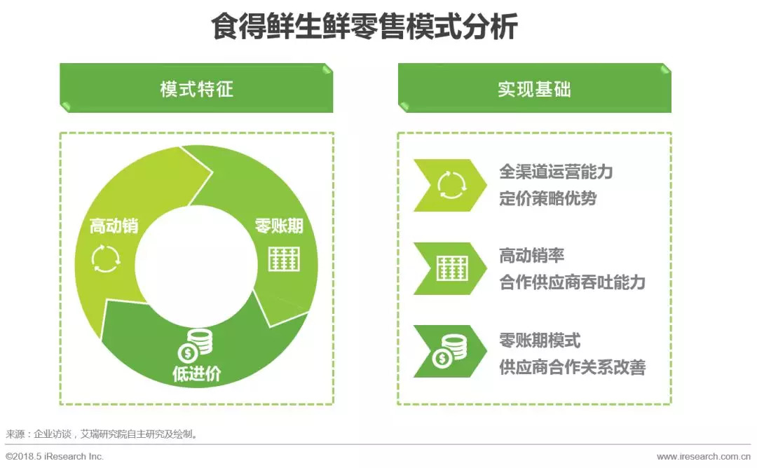 传统生鲜零售的市场覆盖成本由租金成本、库存成本,以及门店运营成本等部分构成。上述成本结构自身暗含着低效的成分,因而行业效率的提升自然从改善原有成本结构入手。就具体措施而言,食得鲜进行了如下探索:首先,全渠道运营以及自建物流配送体系。上述举措旨在提升单位门店顾客覆盖能力,变相降低租金成本、库存成本及门店运营成本,同时有效提升动销率。其次,与上游供应商关系的改善。与多数传统零售商不同,食得鲜在采购环节采用现款现货模式,以此获得更低的购货价格,在保证销售毛利同时,以更低的定价将商品提供给消费者。