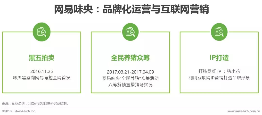 作为网易旗下品牌,味央在品牌运营与互联网营销方面也具备天然优势。通过“黑五拍卖”与“全民养猪众筹”等极具互联网化特征的营销活动,提升品牌知名度与形象;还通过打造拟人化IP形象,提升网易味央在年轻消费群体中的品牌认知,对于泛生鲜品牌IP化运营具备良好的借鉴意义。