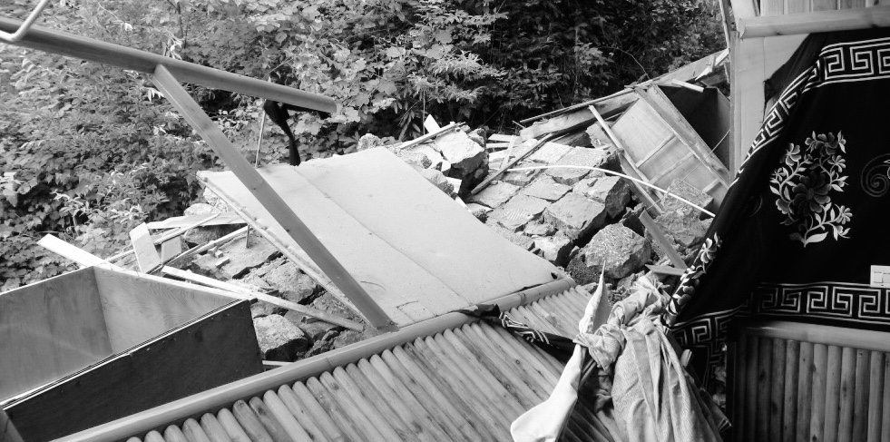印入他眼帘的是另外一番样子:被裂缝摊分的山路,垮塌的羌族碉堡,扭曲掉落的情人桥和索道,穿着羌族服饰的姑娘死后发黑的衣角。
