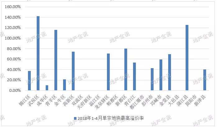 2018年1-4月大成都各区域单宗地块最高溢价率