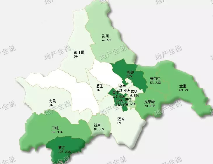 溢价率最高在武侯 其次为蒲江的125%