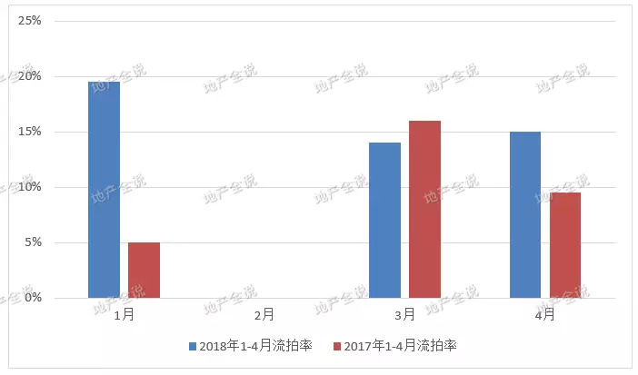 2017年1-4月与2018年1-4月平均流拍率均在10%左右,对比2017年,2018的1-4月的平均流拍率同比上涨6%。同时受春节假期的影响,2月份的土地市场整体活跃度不高,供地量和流拍率也相对较低。