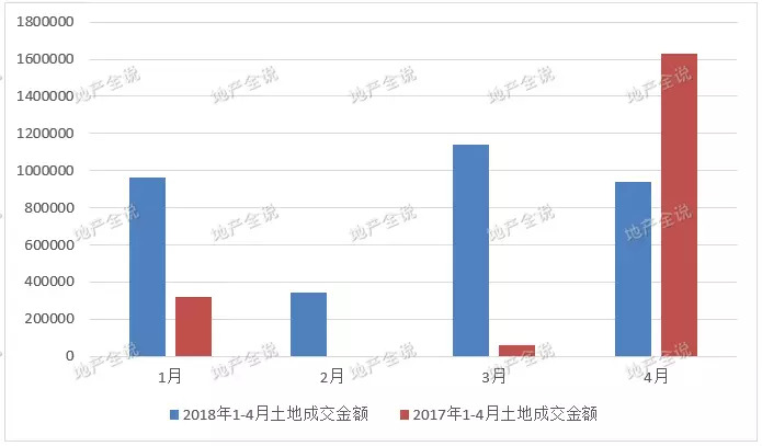 2017年和2018年前4个月土地成交金额对比(单位:万元)