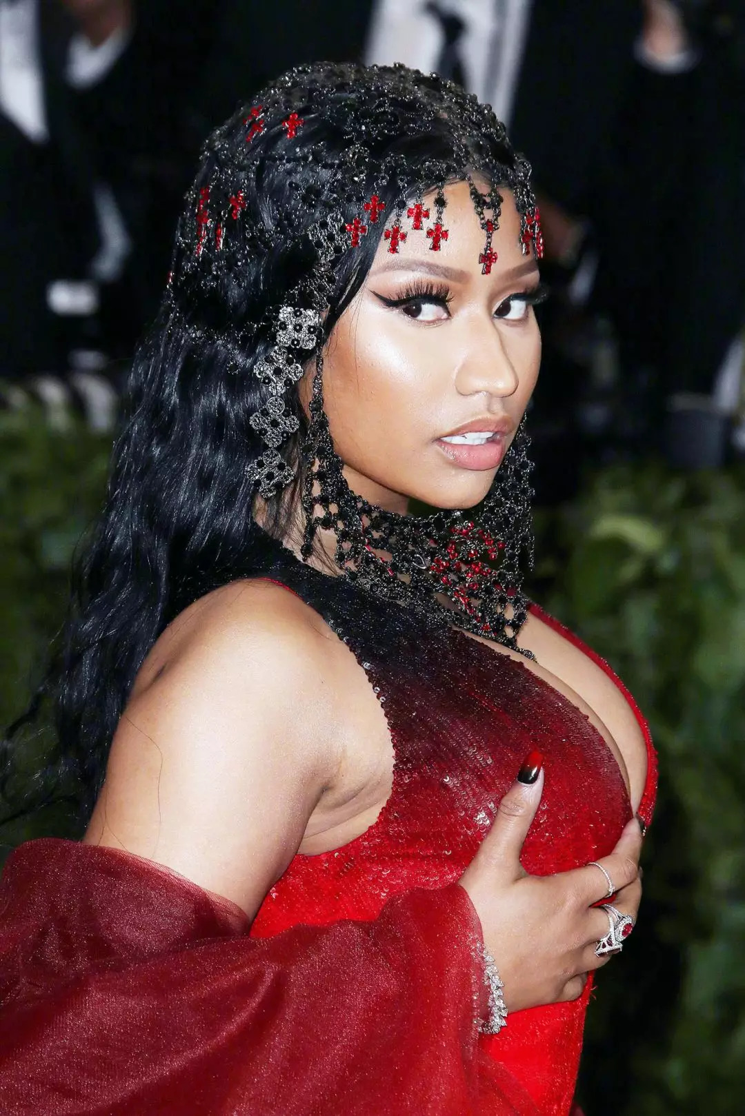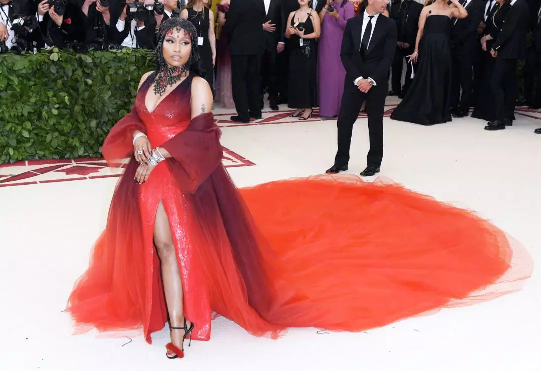 同样是选择红裙子,nicki minaj则是惨不忍睹的代表。穿着Oscar de la Renta纱裙的她直接把红毯变成了命案现场,留下一地血泊。
