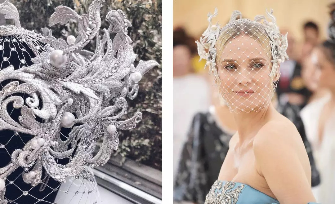 Diane Kruger造型里我最爱的这个珠宝面纱是Tasaki和帽式设计师PhilipTreacy合作设计的,来源于圣母玛利亚的纯净玫瑰茎装饰让她美得不能有一点污染。