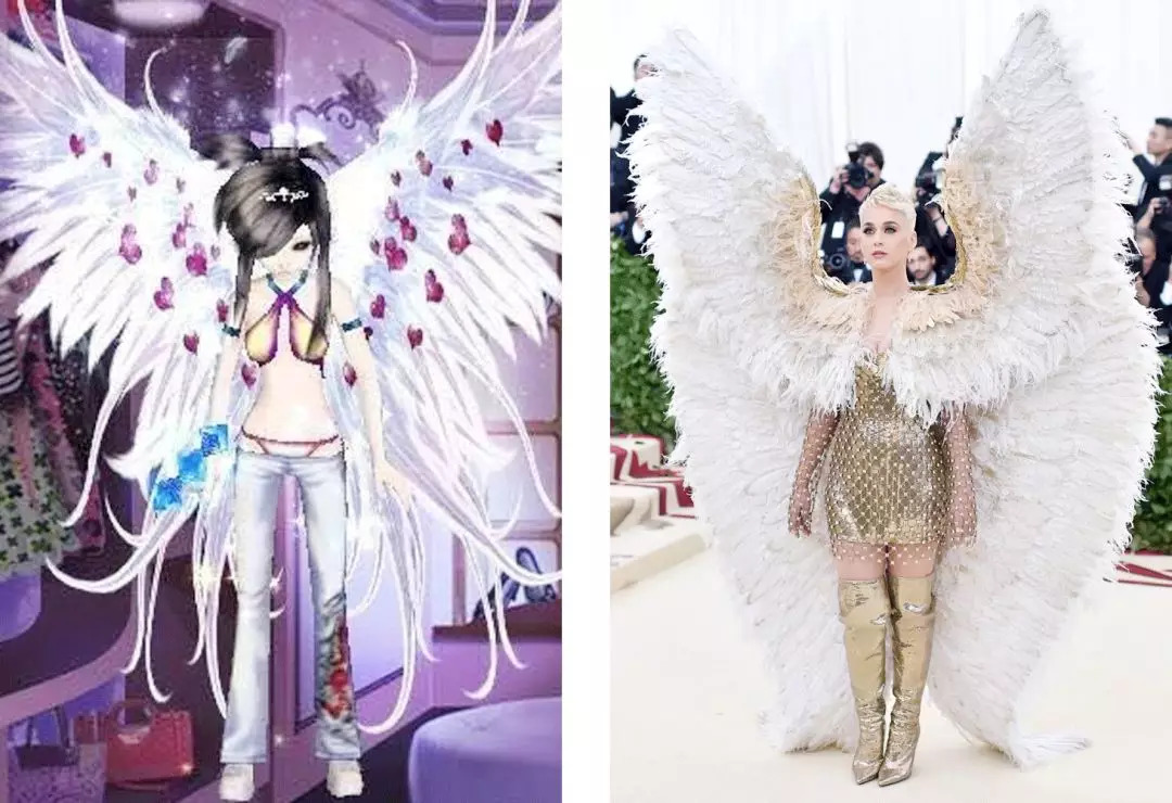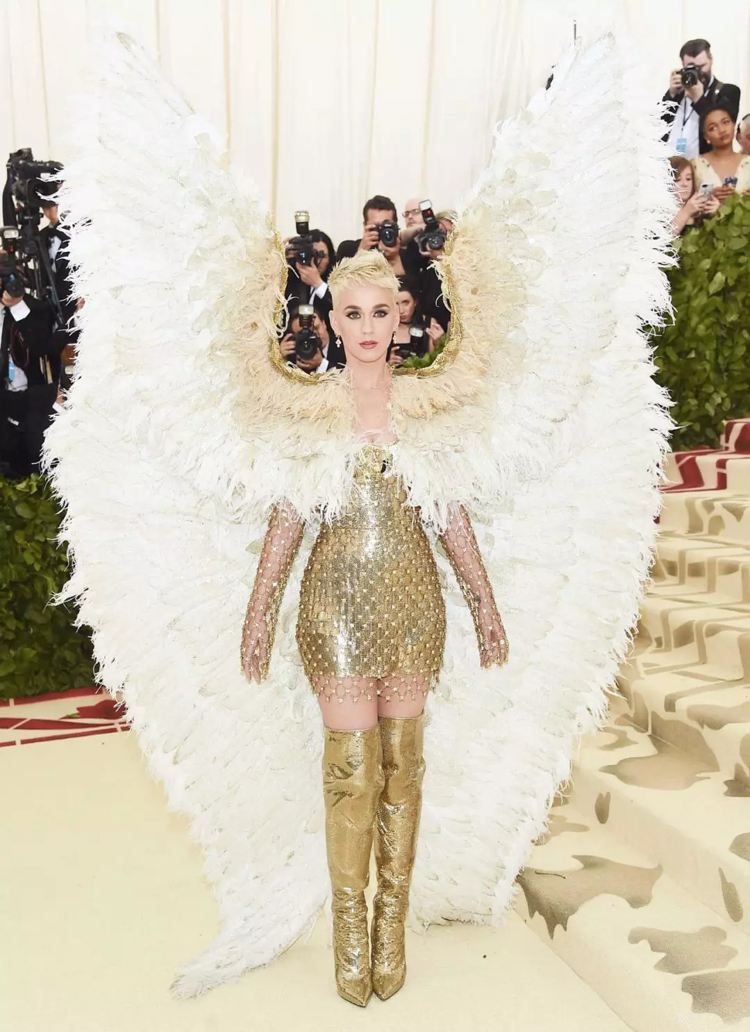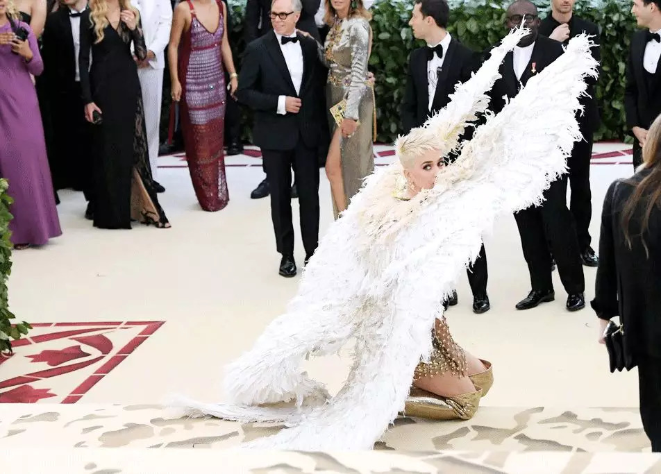 这边穿Versace定制的短裙、长靴和大翅膀的Katy Perry却让人云里雾里一头雾水。