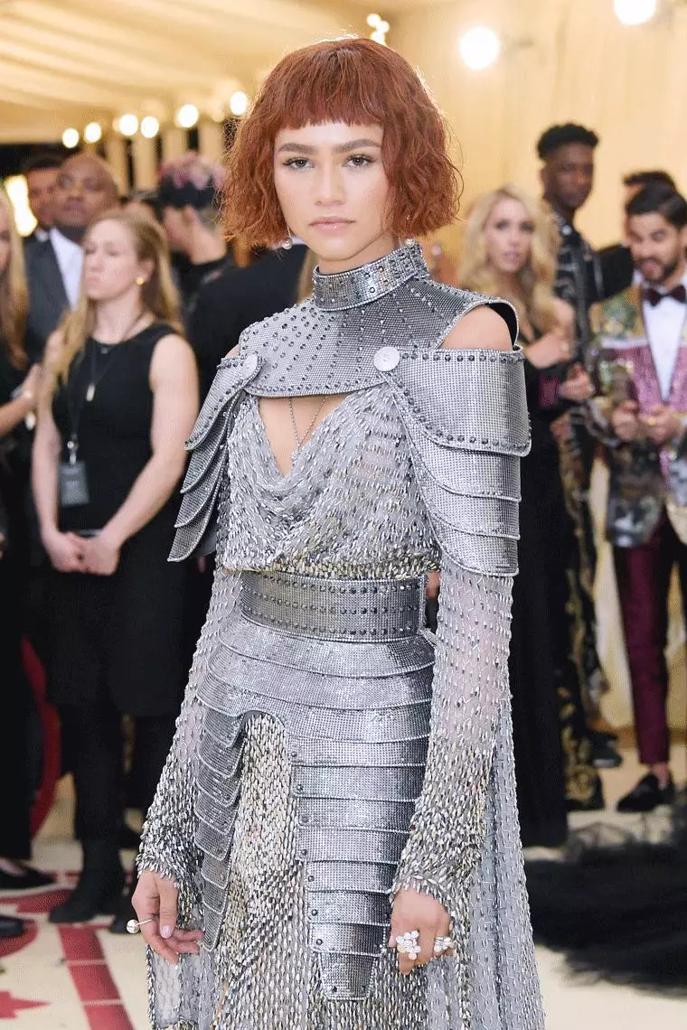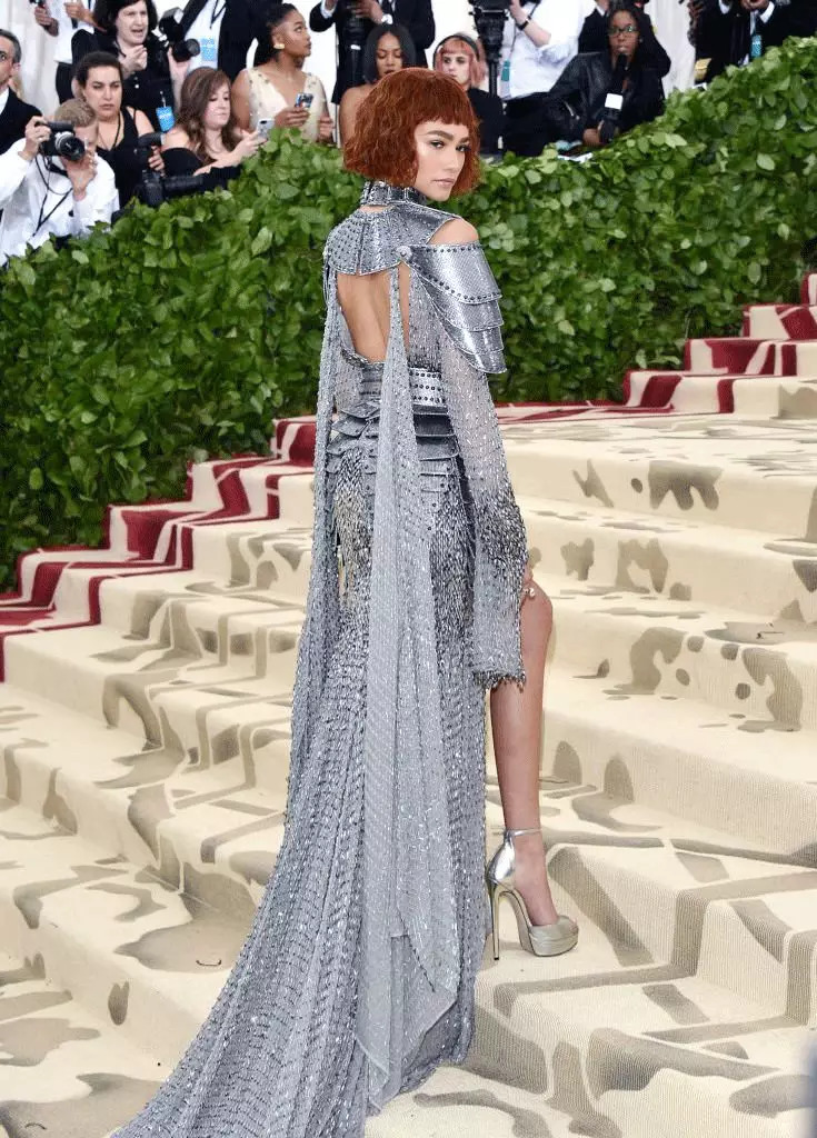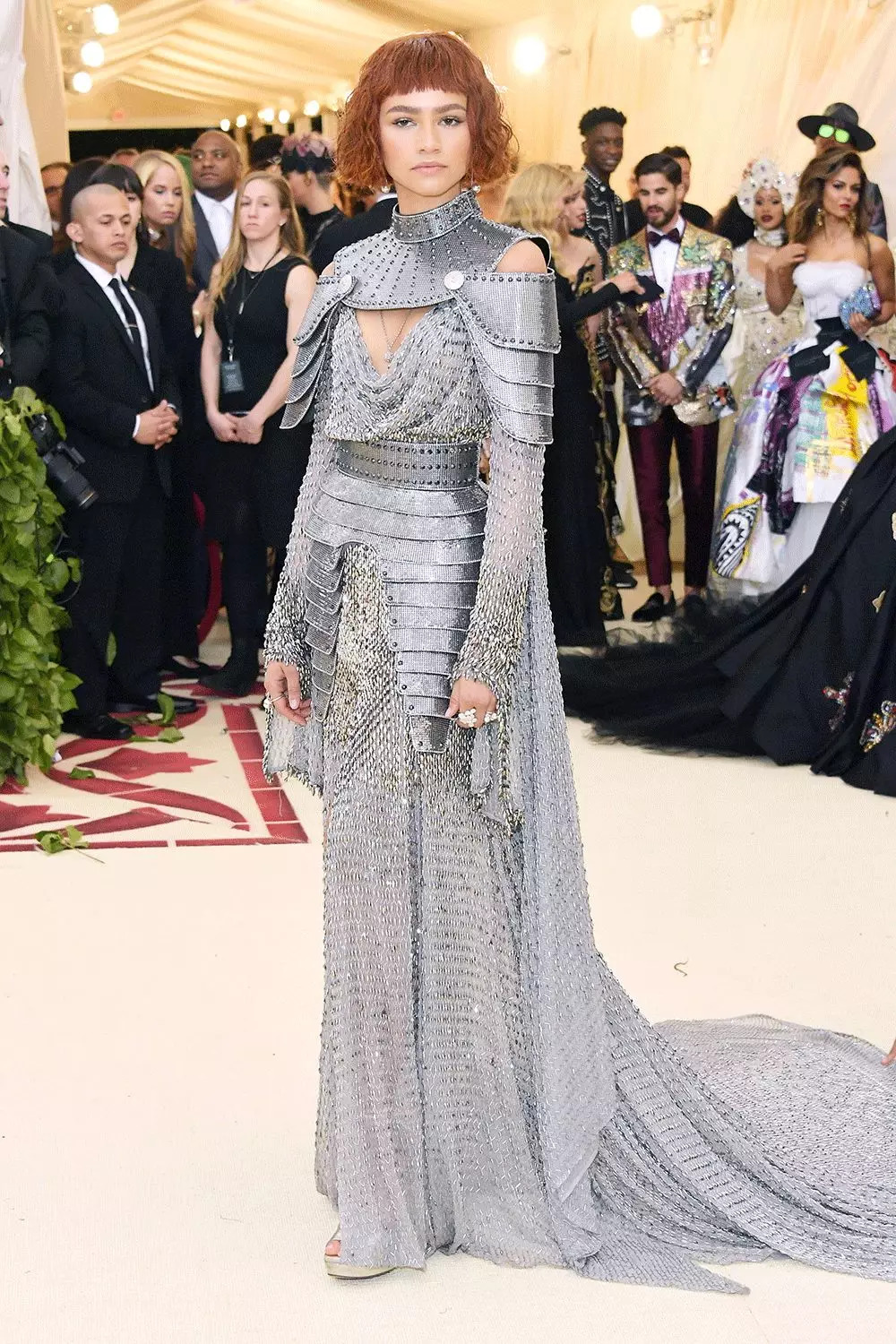 有人走华丽复古的圣母风,穿着Versace银色盔甲裙的zendaya则完全变成了圣女贞德本人。