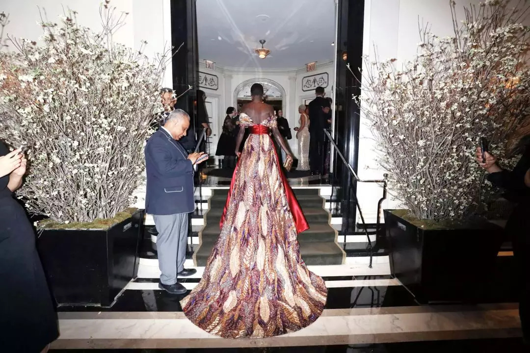 身穿Coach定制睡衣裙亮相的她像是从印度来参加活动的外卡嘉宾,不仅色号比之前黑了几度,