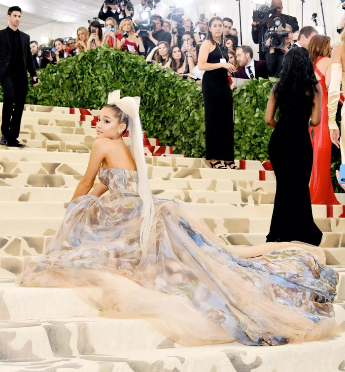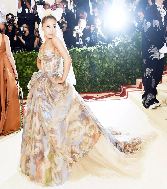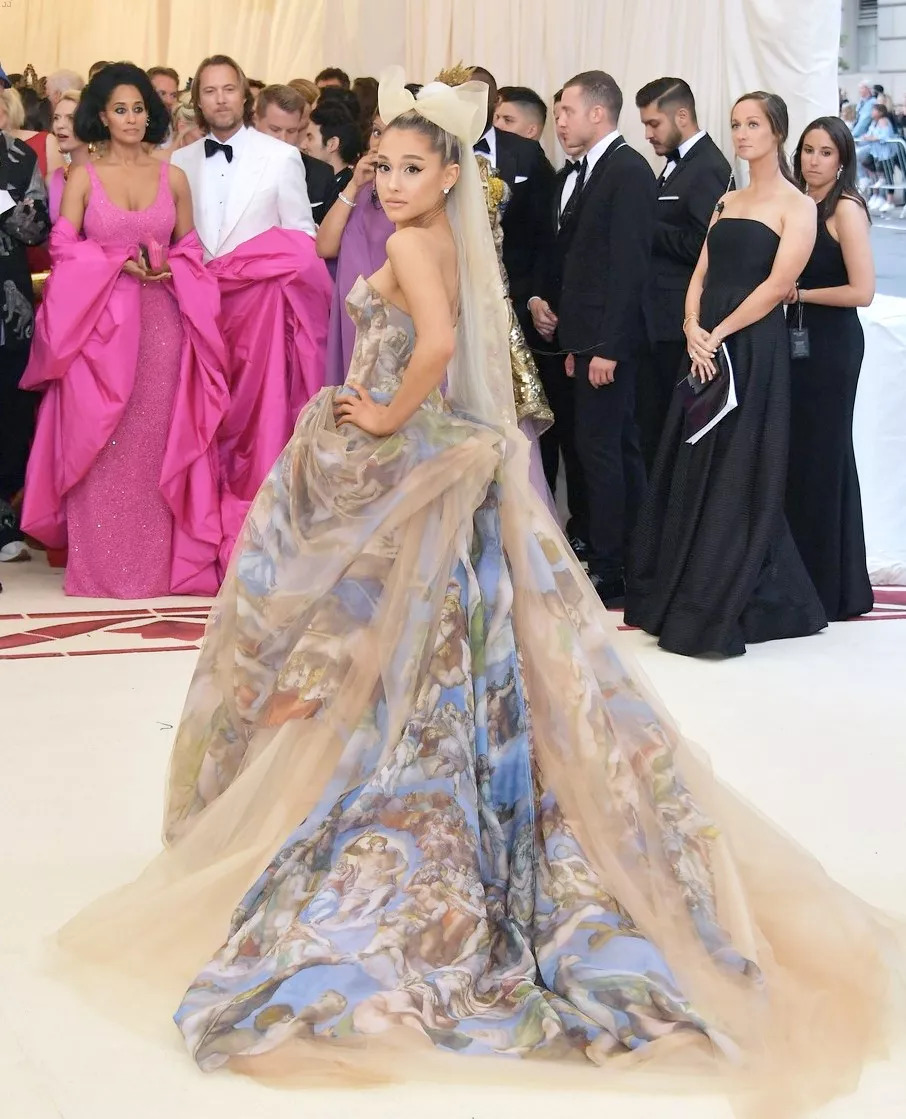 Ariana Grande穿着Vera Wang定制长裙靠剑走偏锋赢很大。