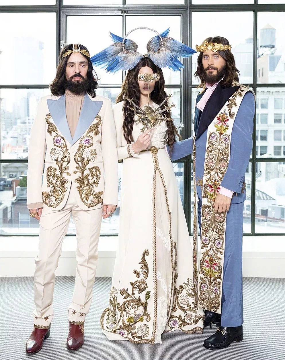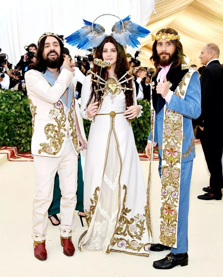 红毯上的Gucci三人组——Lana Del Rey、Alessandro Michele和Jared Leto我也觉得很妙。