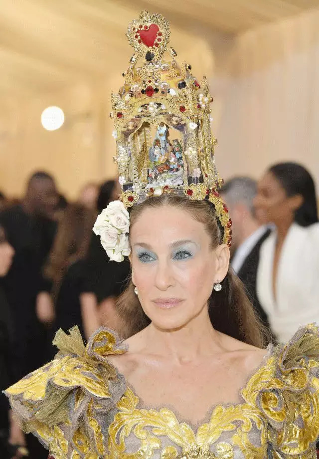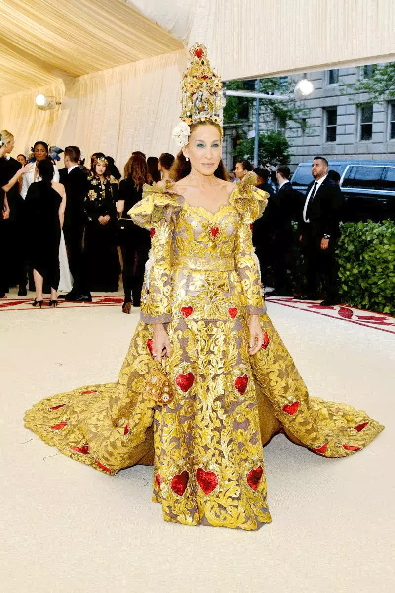 Sarah Jessica parker也爱混搭,不过她永远是用力过猛的示范。穿着Dolce &Gabbana定制礼服来的她像一尊佛像,只想叫人拜拜。