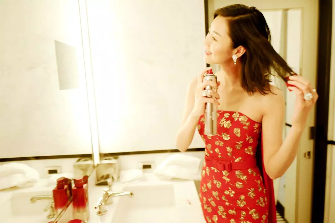 这里来插一个硬广。她用的沙宣小脸洗发水套装,无硅油套装滋养发质,而定型喷雾打造的蓬松发型让脸看上去更加精致。