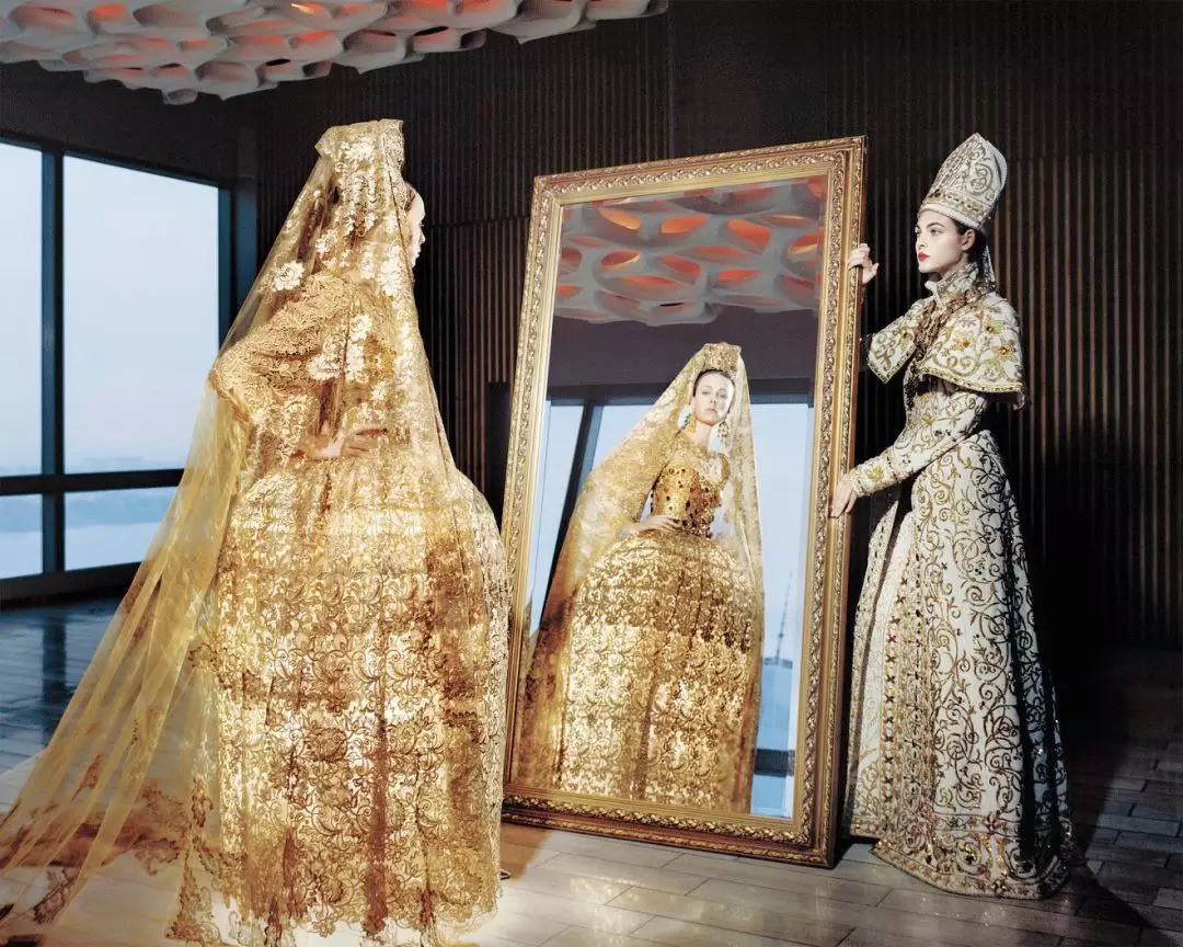 不过她似乎更加迷恋亚洲文化,繁重的头饰像泰国皇室的最爱,缀满宝石的礼服和浓艳的妆容则带有浓浓的印度风格。