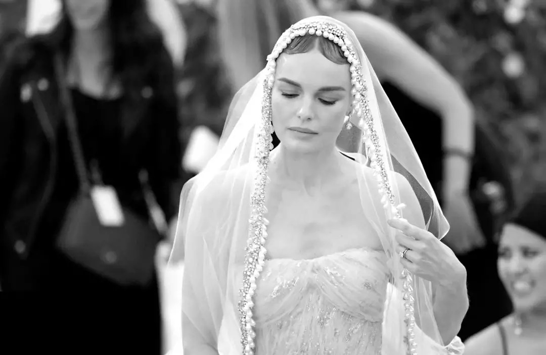 Kate Bosworth穿着Oscar de la Renta的刺绣薄纱长裙就来了,。其他人穿的像宾客,只有她是自己要大婚的女主人。