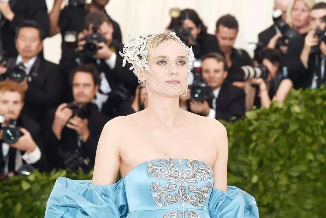 Diane Kruger穿着Prabal Gurung蓝色燕尾裙、佩戴着Tasaki珠宝像从海里走来。
