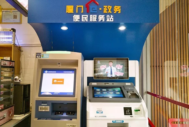 进入厦门经济特区纪念馆附近的一家见福便利店,右手边就是厦门「E政务」便民服务站,可以办理7项业务:就业失业登记证明开具、居住证自助办理、交通违法处理和缴款、出入境办证网上预约、暂(居)住证年限查询材料办理、人口信息查询材料办理、居民身份证网上数字副本申领。据店长介绍,办得最多的是居住证和酒驾扣分。