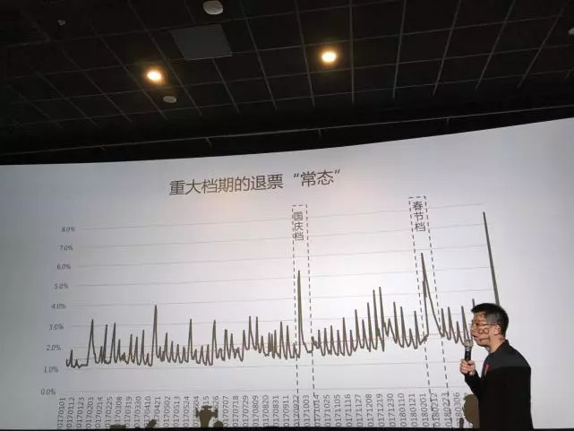 康利在媒体恳谈会上的回复是,“第一,热门档期的热门影片,因为它的关注度高;第二,它的预售开启的时间比较长,并且预售阶段比较火爆。从我们现在掌握的数据来看,大量的用户的退票是产生在映前10几天甚至10天、8天,就是映前越早购买的用户他临时改签的概率越大。多种的原因组合起来,有这样一个大规模的改签或者退票的需求。”