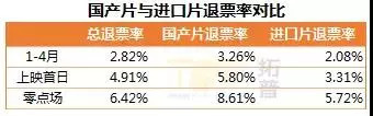 在《后来的我们》大规模退票之后,淘票票与猫眼先后都更新了APP,推出了可以查看影片退票数及退票率的功能。通过对比很多热门影片及热门档期不难发现,很多影片首日的退票率都会数倍于国内电影的平均水平。而拓普电影智库的数据则显示,今年以来,国产影片平均的上映首日平均退票率为5.8%,远超进口片的3.3%。