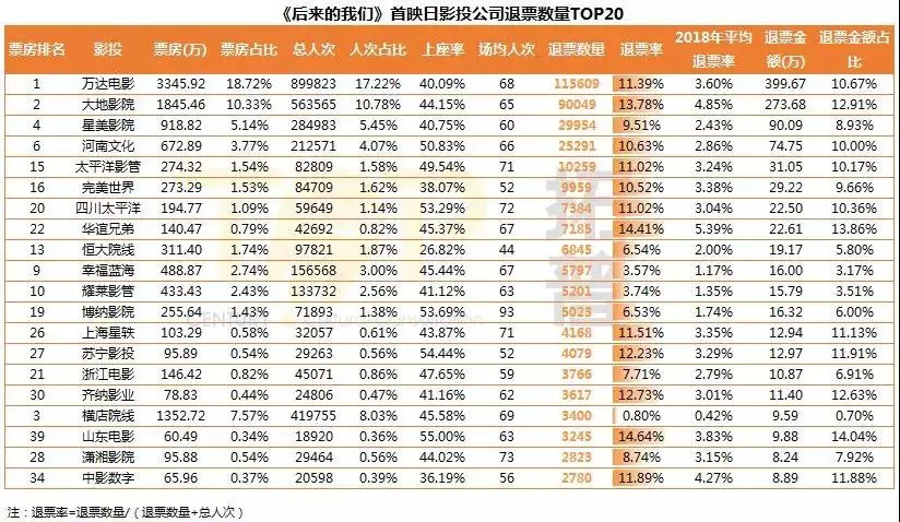 3. 首日改退率:《后来的我们》9%,为猫眼退票率最高