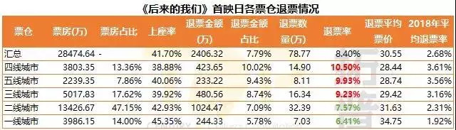 从《后来的我们》首映日的退票情况来看,三四五线城市的退票率最高,分别为9.23%、10.50%和9.93%,均高于当日全国平均退票率。