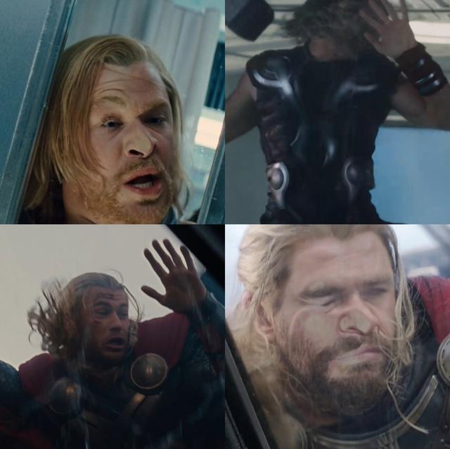 除了[复仇者联盟2:奥创纪元]外,只要是雷神出场过的电影,他都无一例外的被安排了撞玻璃戏份。