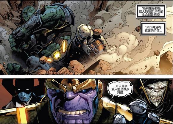这里致敬的是漫画《无限》中,同样是灭霸痛揍浩克的情节,一番打斗之后灭霸说这“只能当作点消遣”。