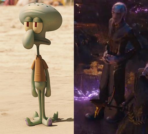而Squidward正是中国观众十分熟悉的动画片[海绵宝宝]中的角色“章鱼哥”,仔细一看,二者还真有几分相像。