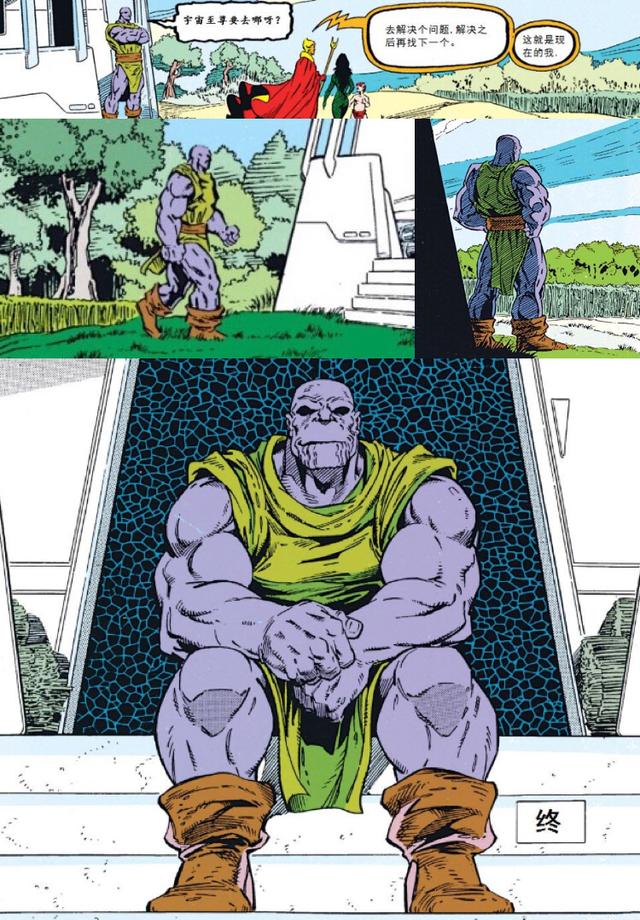 在电影结尾,“拯救了全宇宙”的灭霸,最终来到了一处遍布田园的星球,安详地坐在台阶上,眺望远方。