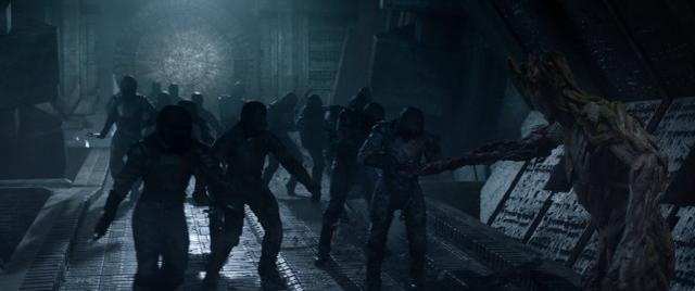 瓦坎达大战中,少年格鲁特将手臂伸长成藤条,穿透了一打先锋卫士兵的身体。
