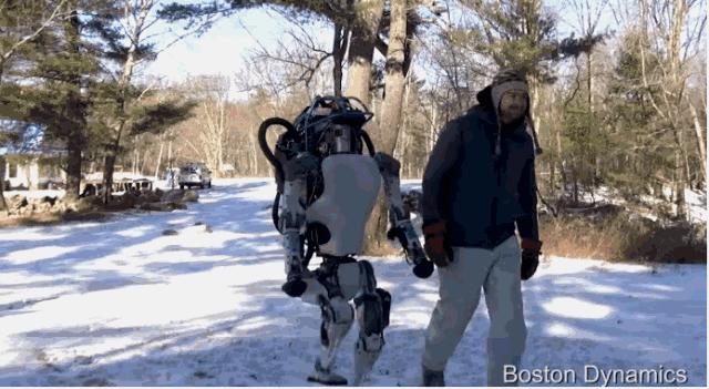 经历了前两版,波士顿动力在2016年2月在YouTube上公布了一段视频,这就是我们看到的现在的Atlas第三版,也是在社交网络曝光度最高最知名的机器人,和第二版的动力一样,Atlas采用电源供电和液压驱动。